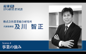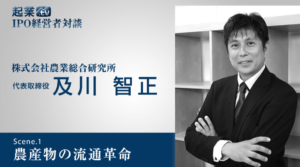 IPOまでの道のり 【IPO経営者対談】農業総合研究所・及川智正×スマートバリュー・渋谷順④ 2016年8月31日 今回のインタビューは、株式会社農業総合研究所 代表取締役社長 及川智正氏に、「参入障壁の高さ」「サービスの魅力」「事業のこれから」についてお話を伺いました。 競合が出てこないモデル 渋谷:今の事業のモデルだけだと、マーケットがそもそもすごく大きいですよね。私が驚いたのは、5500もの生産者さんが、もうすでに参画されてい...起業tv編集部