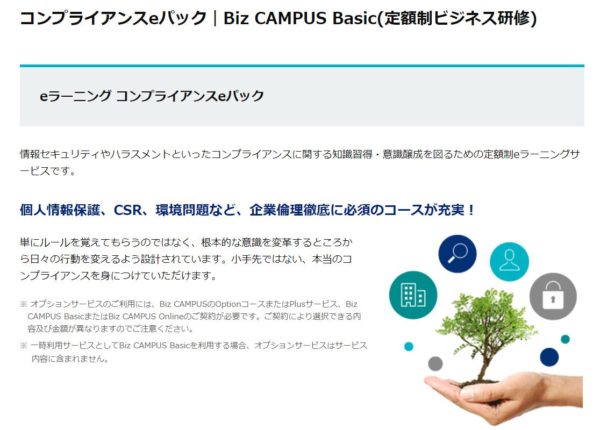 ②「コンプライアンスeパック|Biz CAMPUS Basic」株式会社ラーニングエージェンシー
