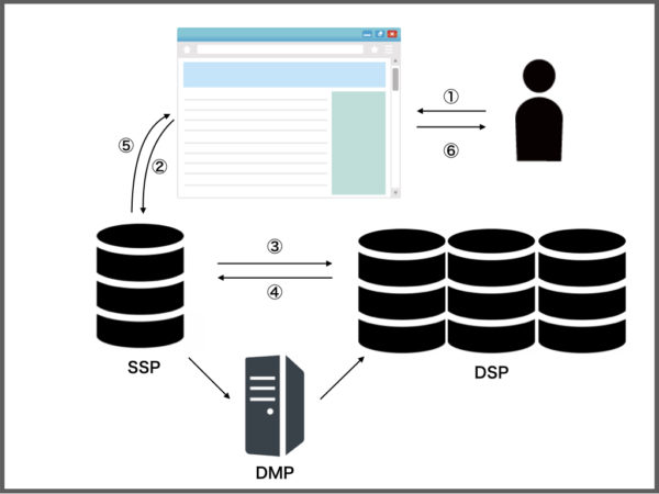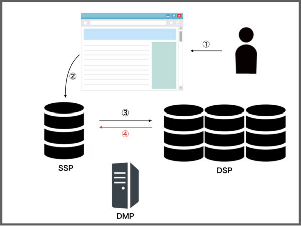 ・DMP(Data Management Platform):SSP側とDSP側の目的を達成するために必要な情報を格納しているプラットフォーム