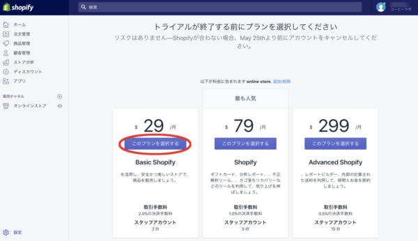 shopifyでは最初の14日間無料で体験できるキャンペーンを実施しています。