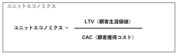 ユニットエコノミクス = LTV(顧客生涯価値)÷ CAC(顧客獲得コスト)